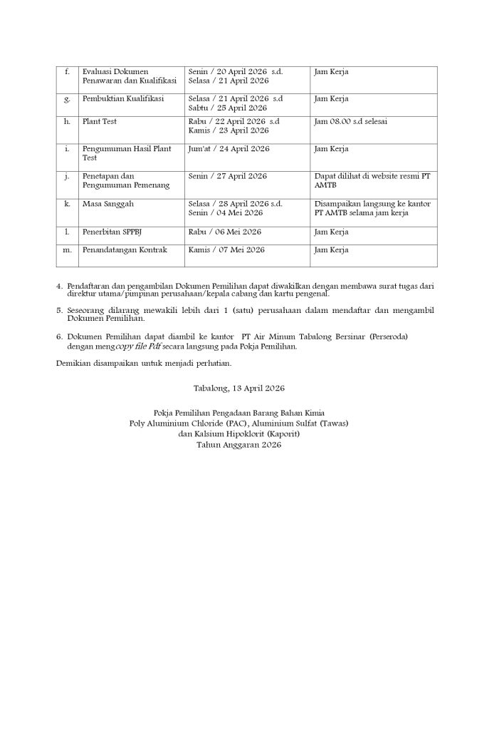 PENGUMUMAN TENDER DENGAN PASCAKUALIFIKASI